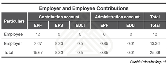 This infographic shows the employer and employee contributions in India.